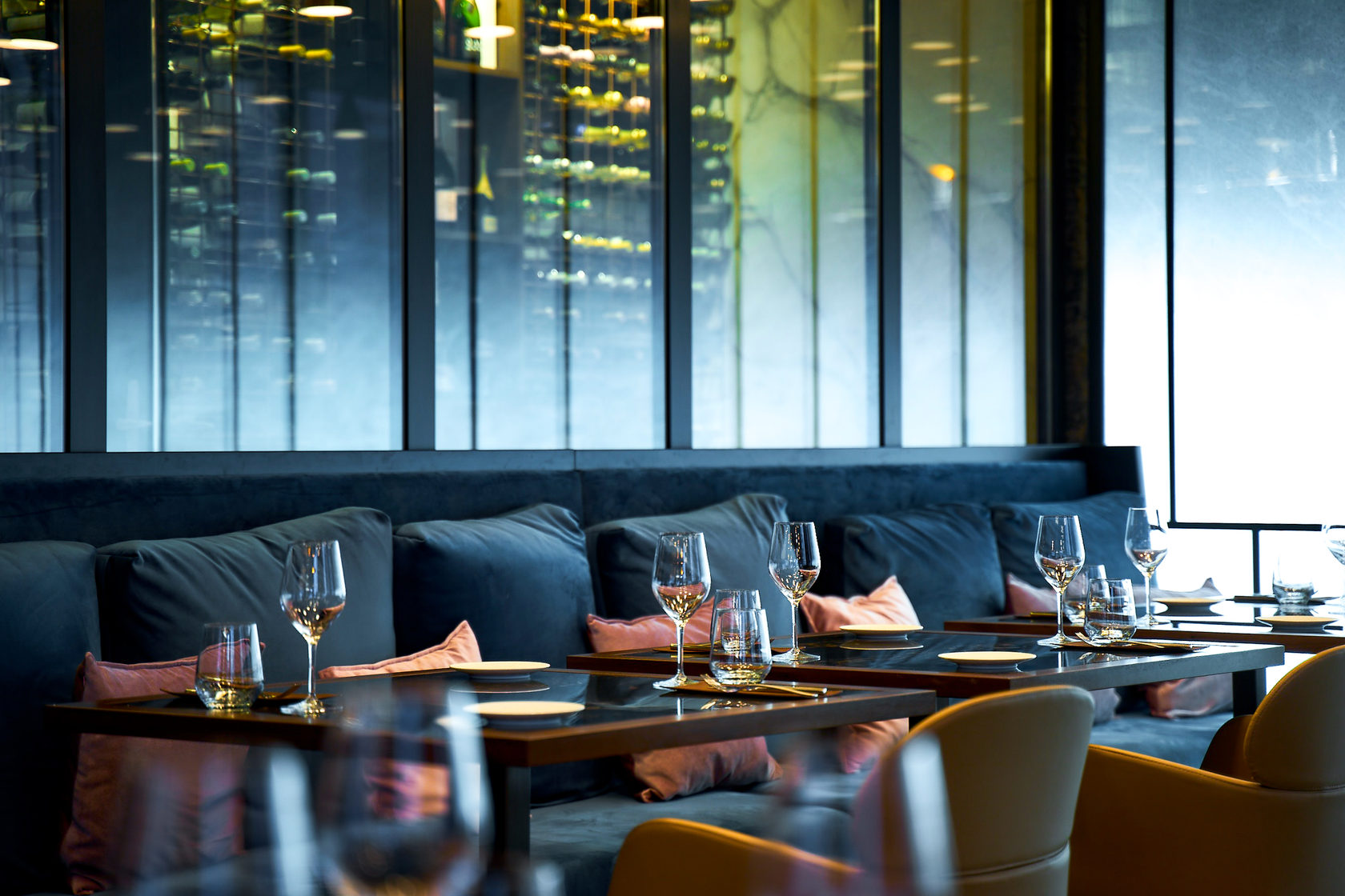 Chef’s Corner is a Michelin-recommended steakhouse in Riga’s quiet center. The venue features exposed brick and modern design, creating a chic dining atmosphere, with counter seating along an open kitchen concept and table seating throughout the main dining space.
