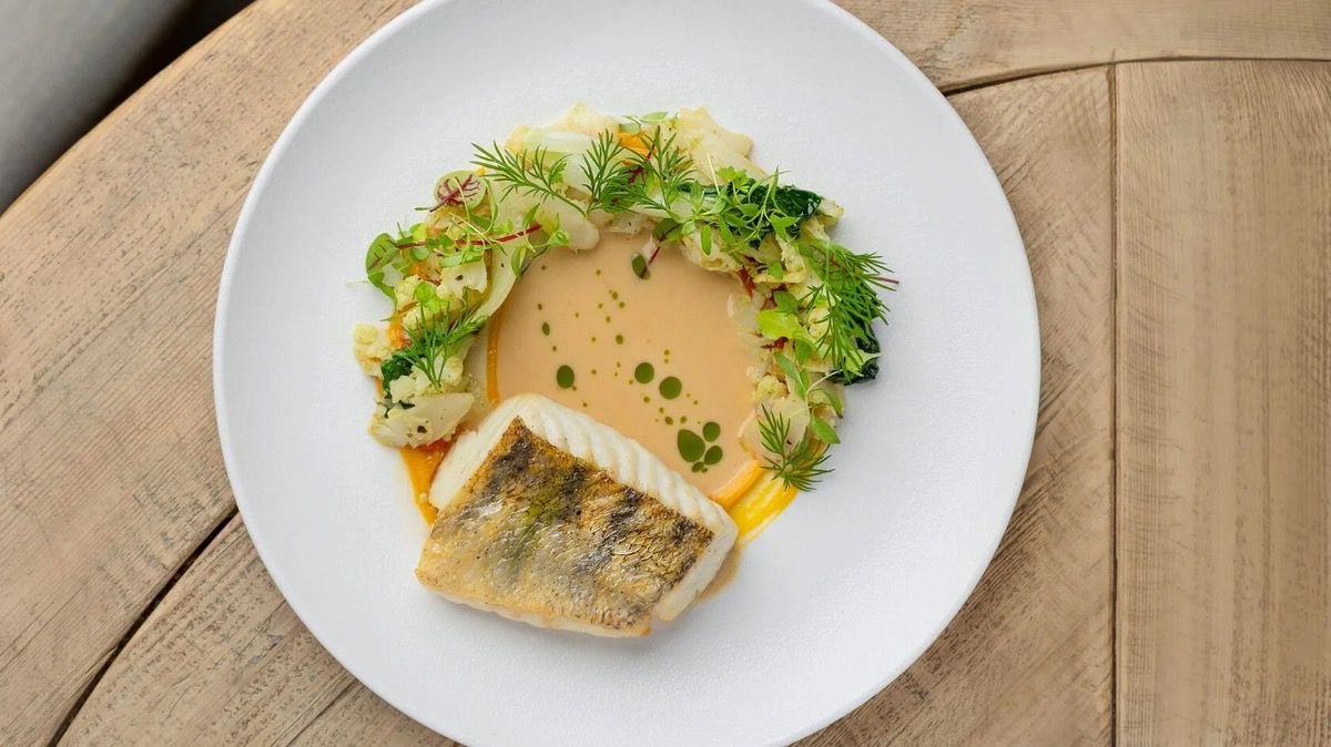 The restaurant spans a spacious layout with 120 seats across multiple areas. Chef Jegors Porulevs leads the kitchen, focusing on locally sourced ingredients from Estonian farms, forests, and coastal waters. The venue uses unconventional serving mediums, including wood, cast iron, paper, glass, and textiles to present dishes. Live music performances occur on Friday and Saturday evenings.